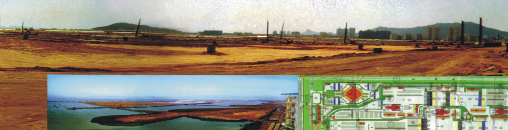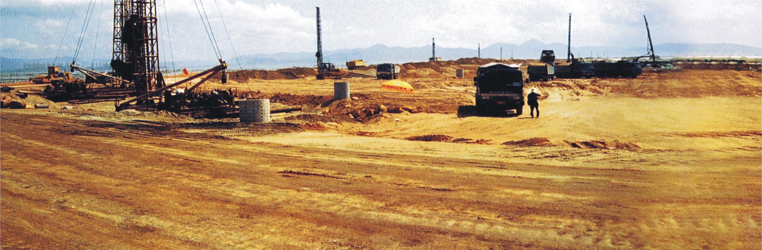 深圳-香港跨海大桥(西部通道)口岸填海工程,特大型填海与地基处理设计(1997-2003年),国家重点工程,隔堤填海、面积150万m²,淤泥厚度15-22m。采用分块插塑料板超载预压的排水固结方法处理。