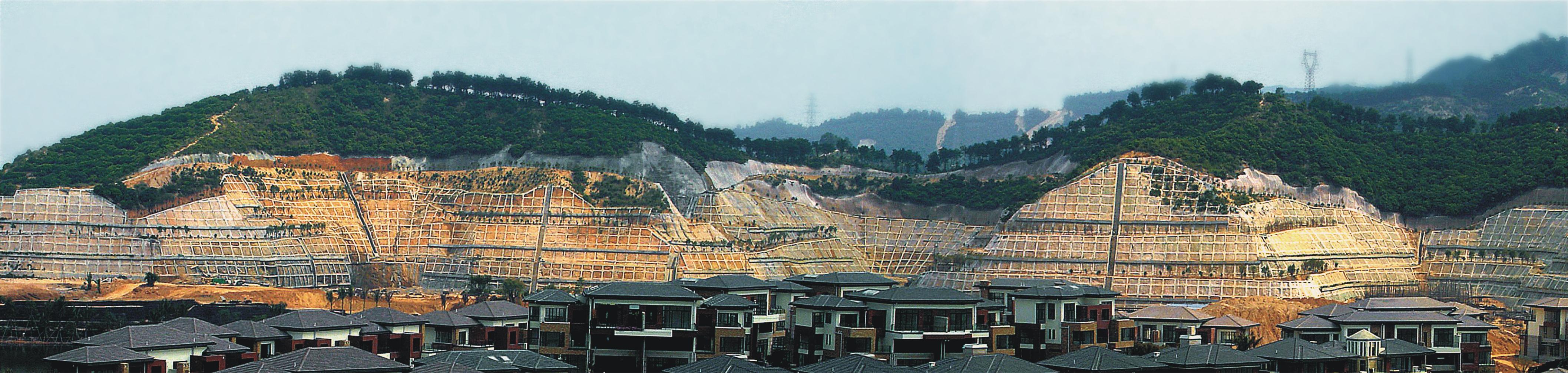 边坡支护设计,坡长1080m坡高20-60m,采用框架梁+锚杆(锚索)支护。
