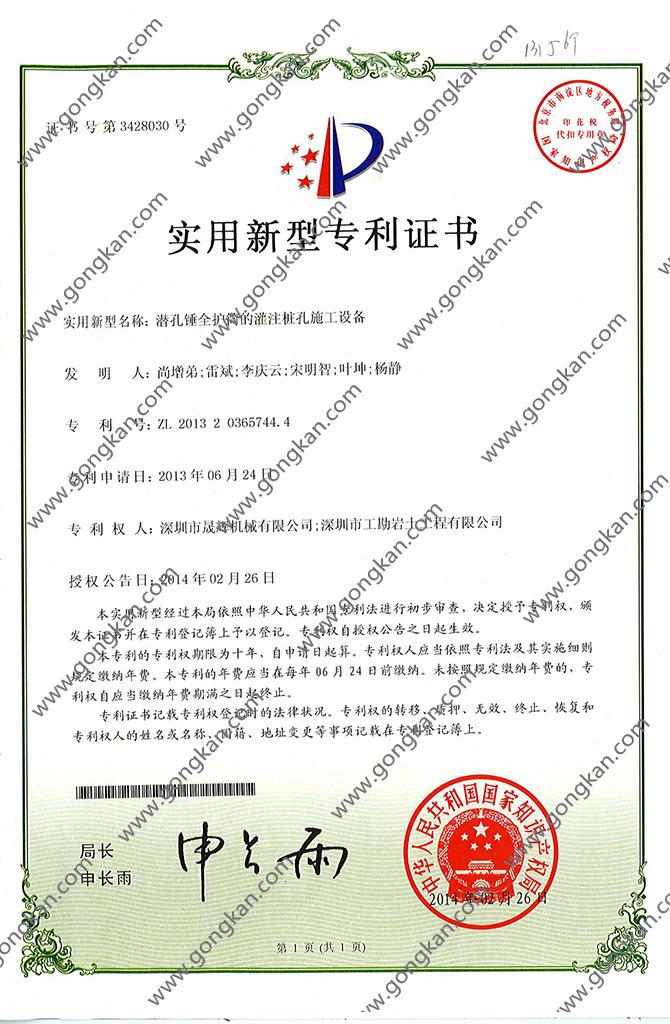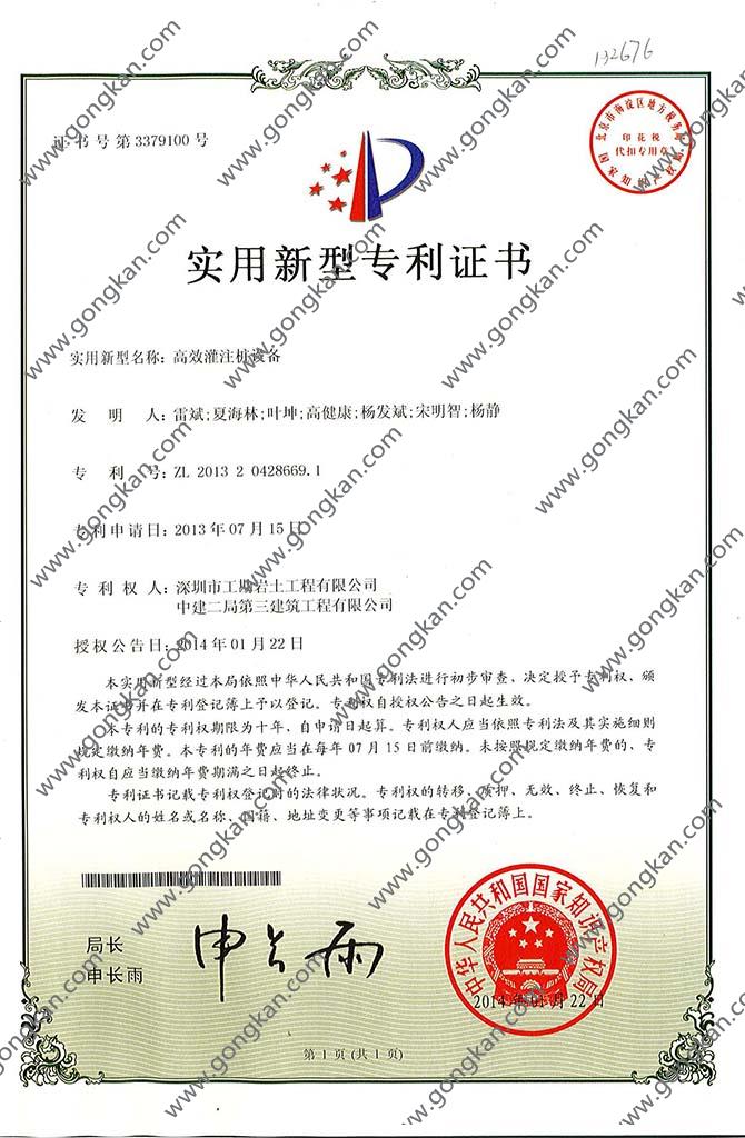 • 高效灌注桩设备 发明人:雷斌;夏海林;叶坤;高健康
